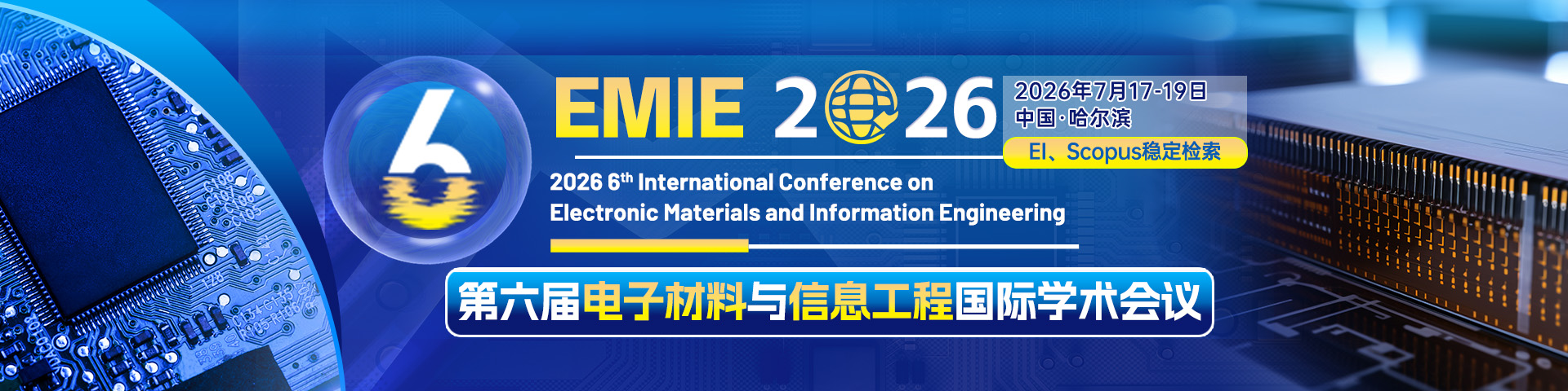 2026 6th International Conference on Electronic Materials and Information Engineering (EMIE 2026) will be held in Harbin, China from July 17 to 19, 2026. It is a leading conference for all researchers from different countries and territories to present their research results about Electron Devices and Mechanical Engineering.